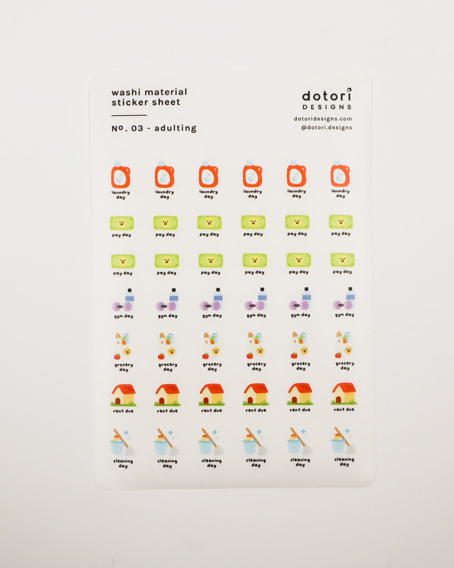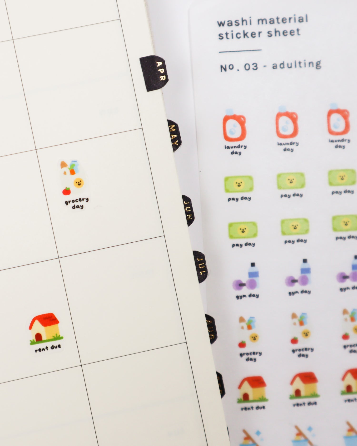 Decorate your planner with these cute, minimalist stickers! These sticker sheets may feel thinner than our typical sticker sheets because these are printed on washi paper material. We chose washi paper so that you can write on top of the sticker as well as see what's written underneath the sticker. The stickers are easily moveable while retaining its stickiness.