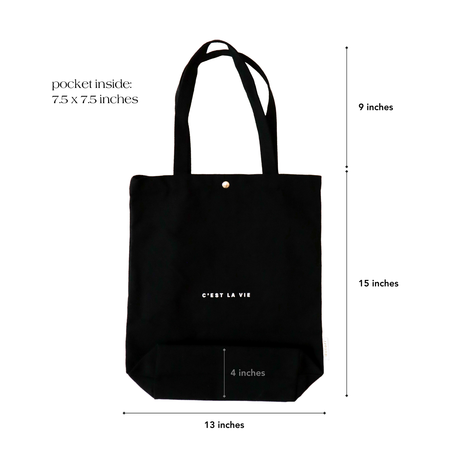 C'est La Vie Canvas Tote Bag with Pocket (Black)