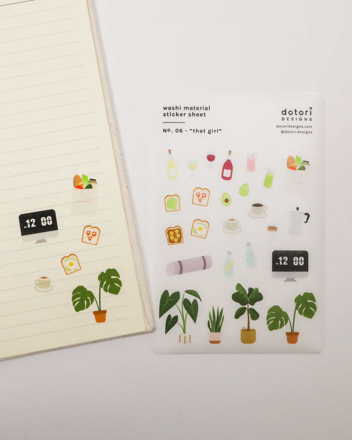 Decorate your planner with these cute aesthetic stickers! Who doesn't love a good avocado toast and fiddle leaf plant (that won't die on you)? These sticker sheets may feel thinner than our typical sticker sheets because these are printed on washi paper material. We chose washi paper so that you can write on top of the sticker as well as see what's written underneath the sticker. The stickers are easily moveable while retaining its stickiness.