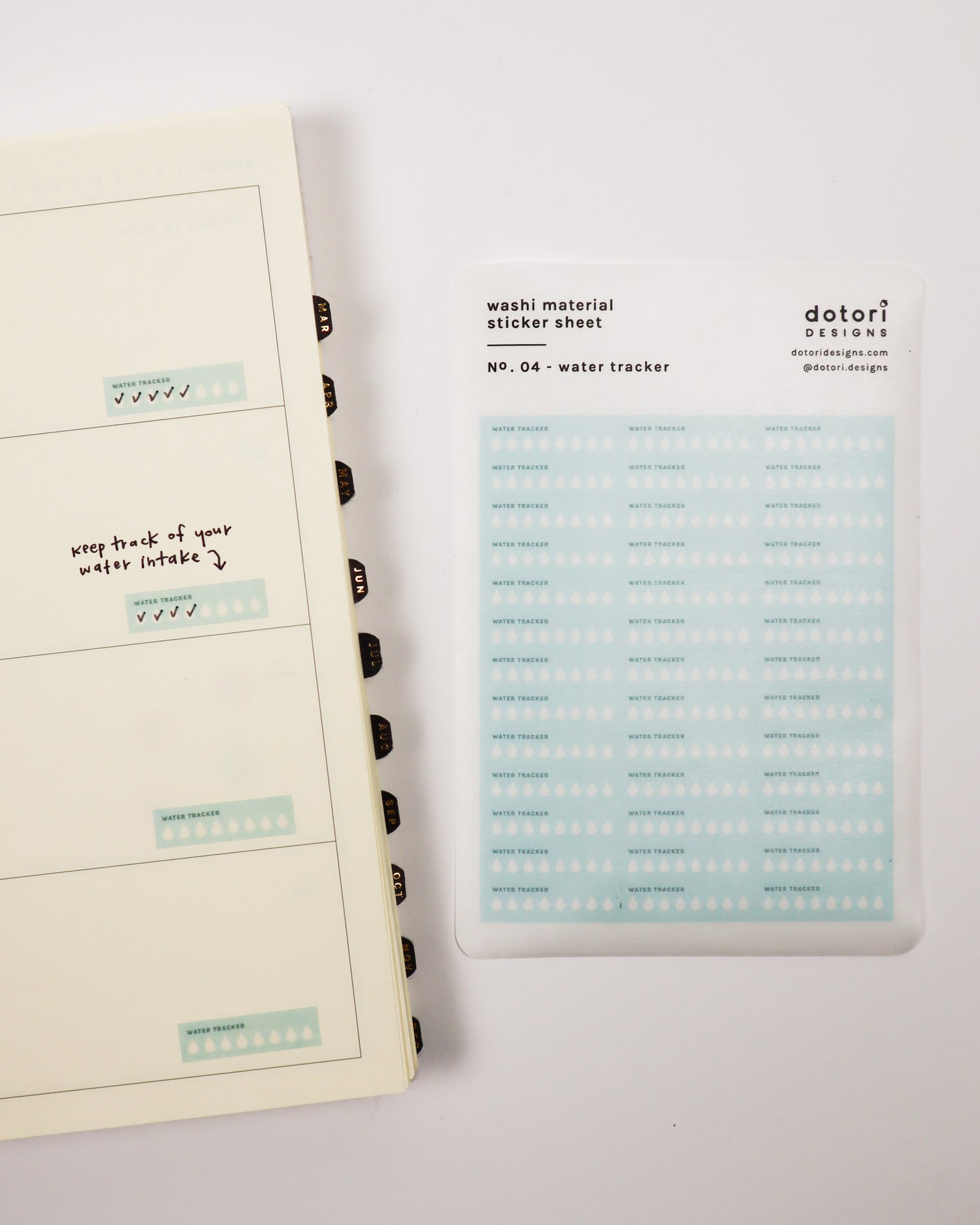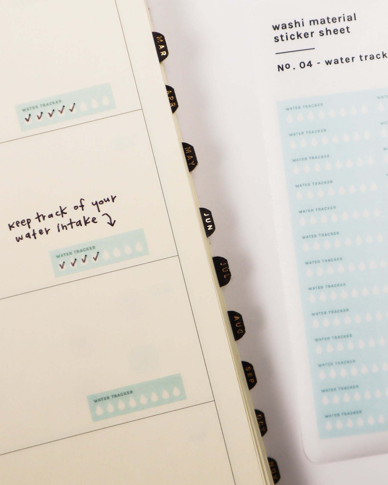 Keep track of how many cups of water you drink a day! These sticker sheets may feel thinner than our typical sticker sheets because these are printed on washi paper material. We chose washi paper so that you can write on top of the sticker as well as see what's written underneath the sticker. The stickers are easily moveable while retaining its stickiness.